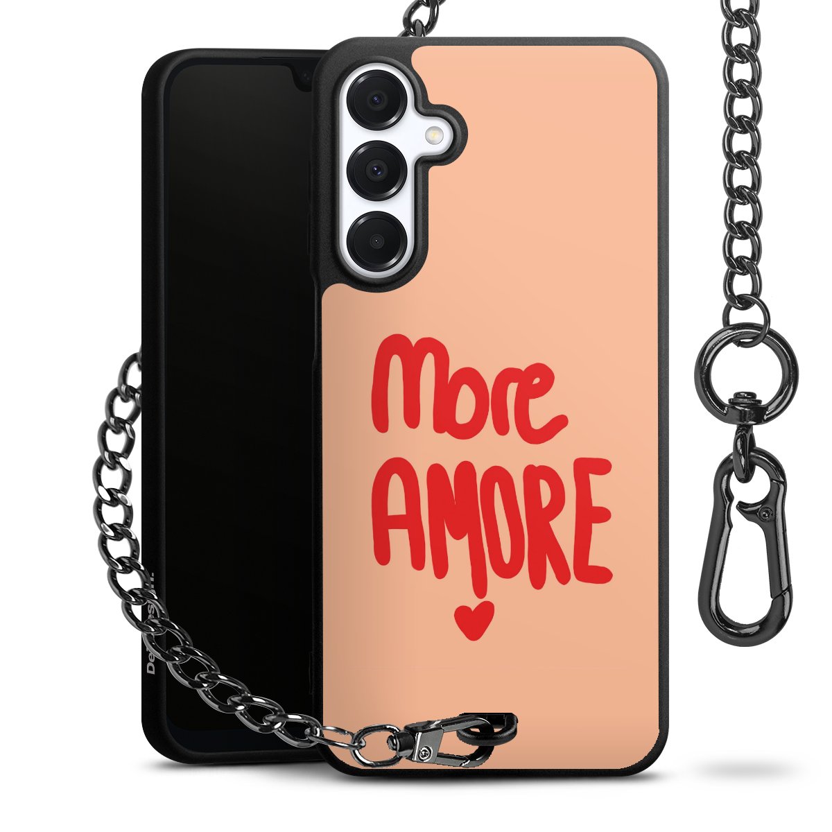 • Mattschwarze Handyhülle mit Metallkette