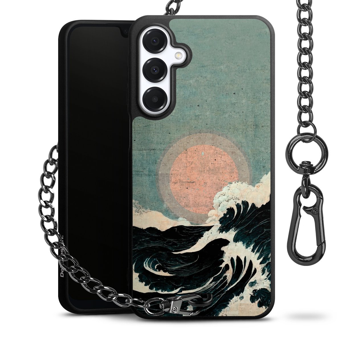 • Mattschwarze Handyhülle mit Metallkette