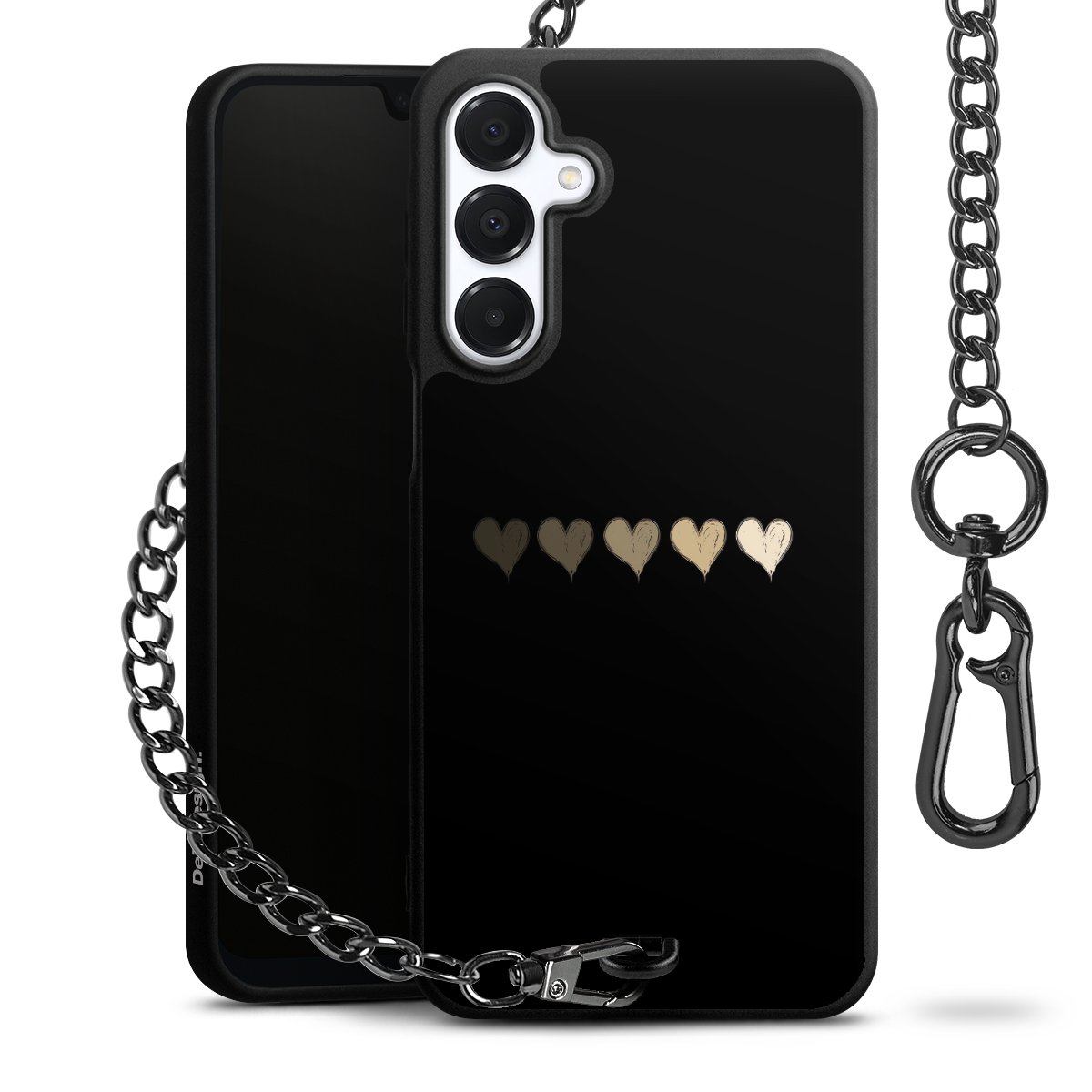 - Mattschwarze Handyhülle mit Metallkette