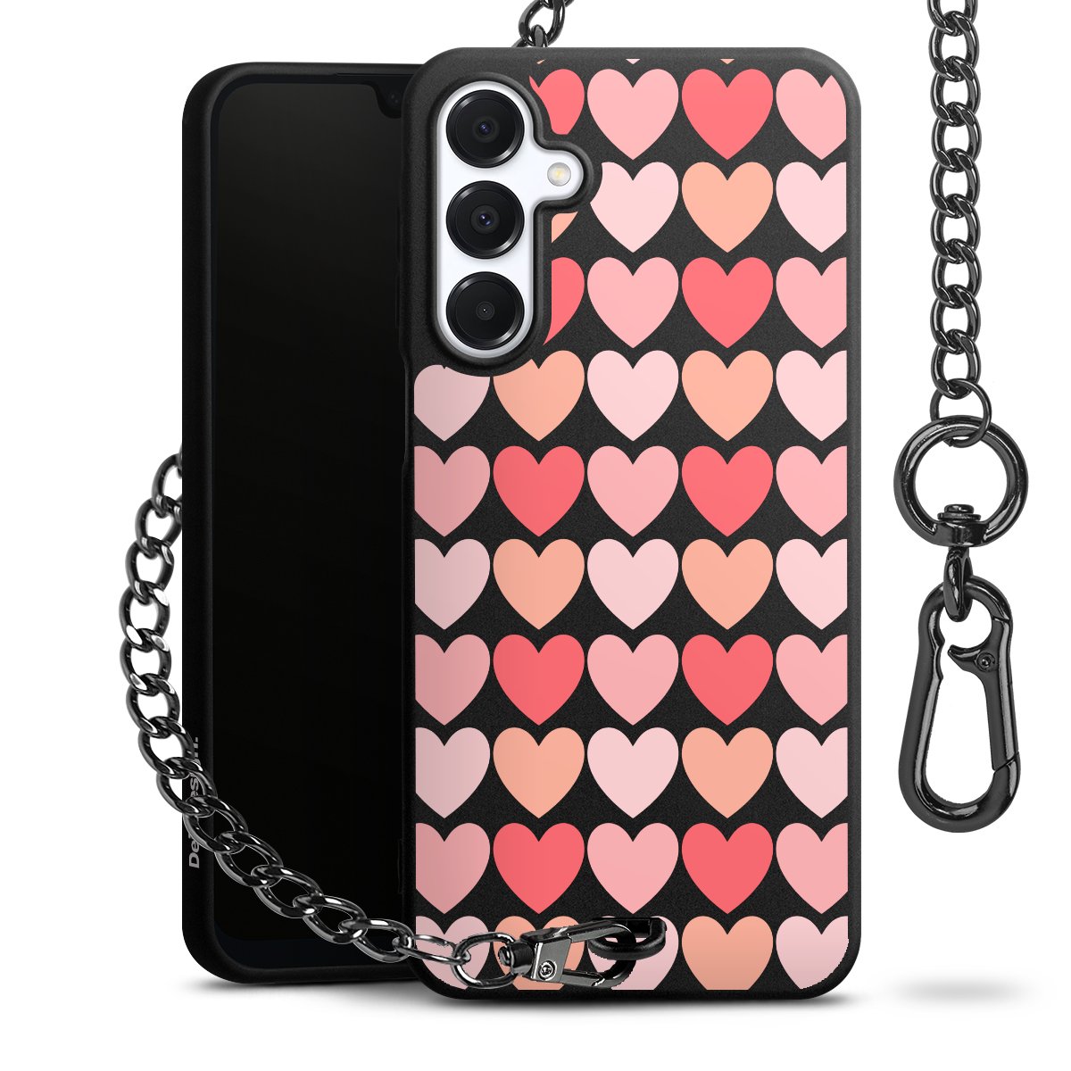 • Mattschwarze Handyhülle mit Metallkette