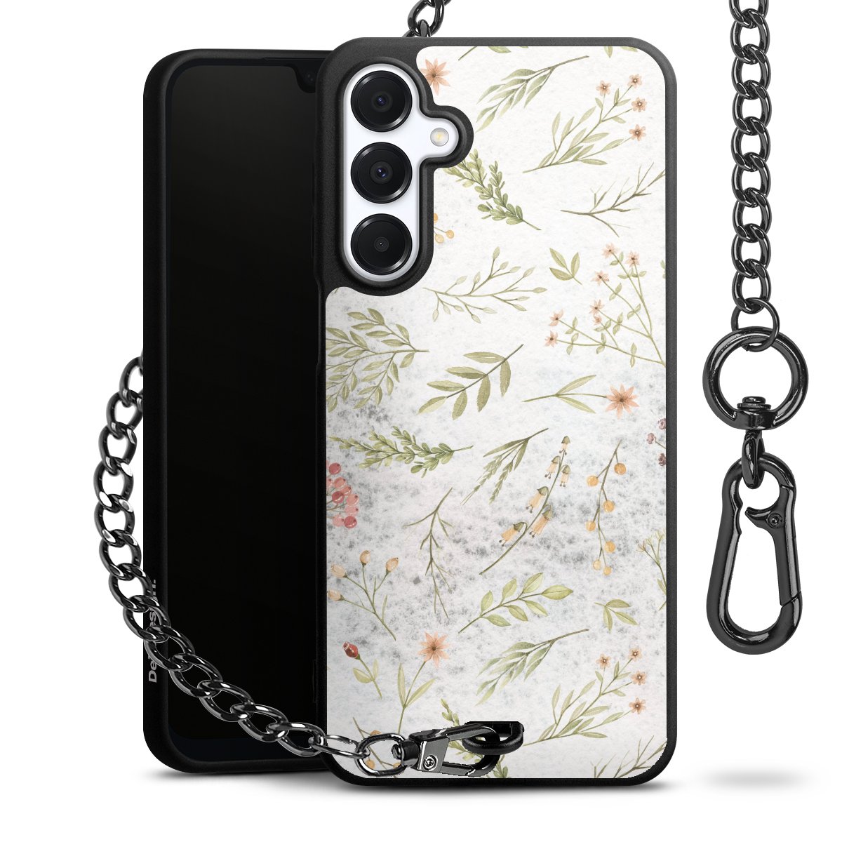 - Mattschwarze Handyhülle mit Metallkette
