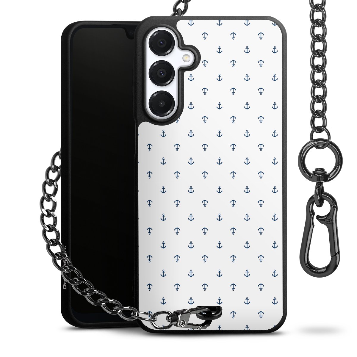 - Mattschwarze Handyhülle mit Metallkette