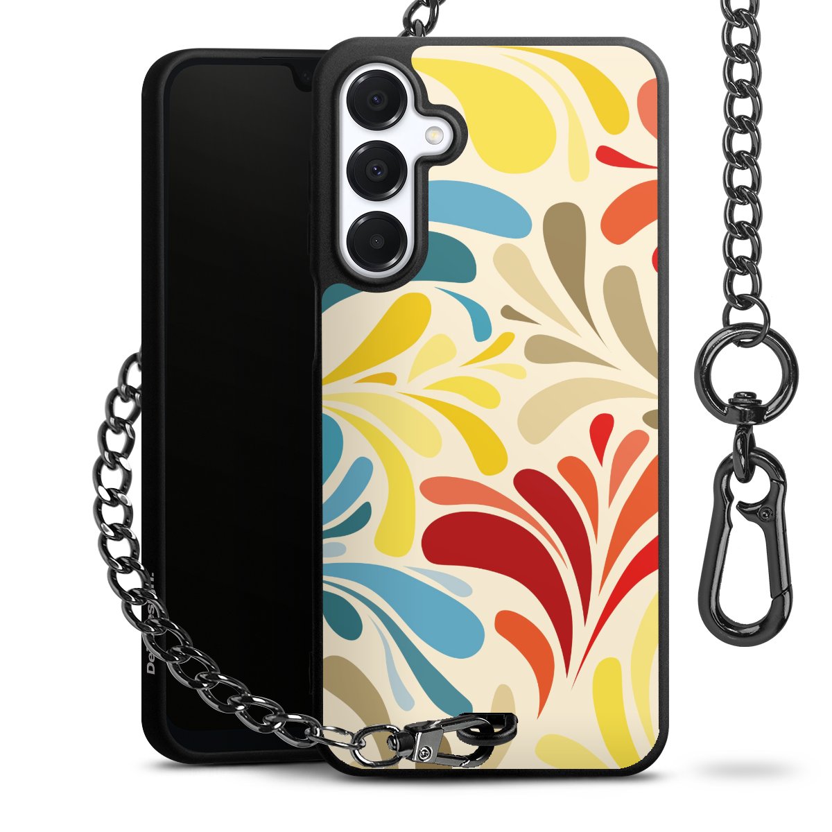- Mattschwarze Handyhülle mit Metallkette