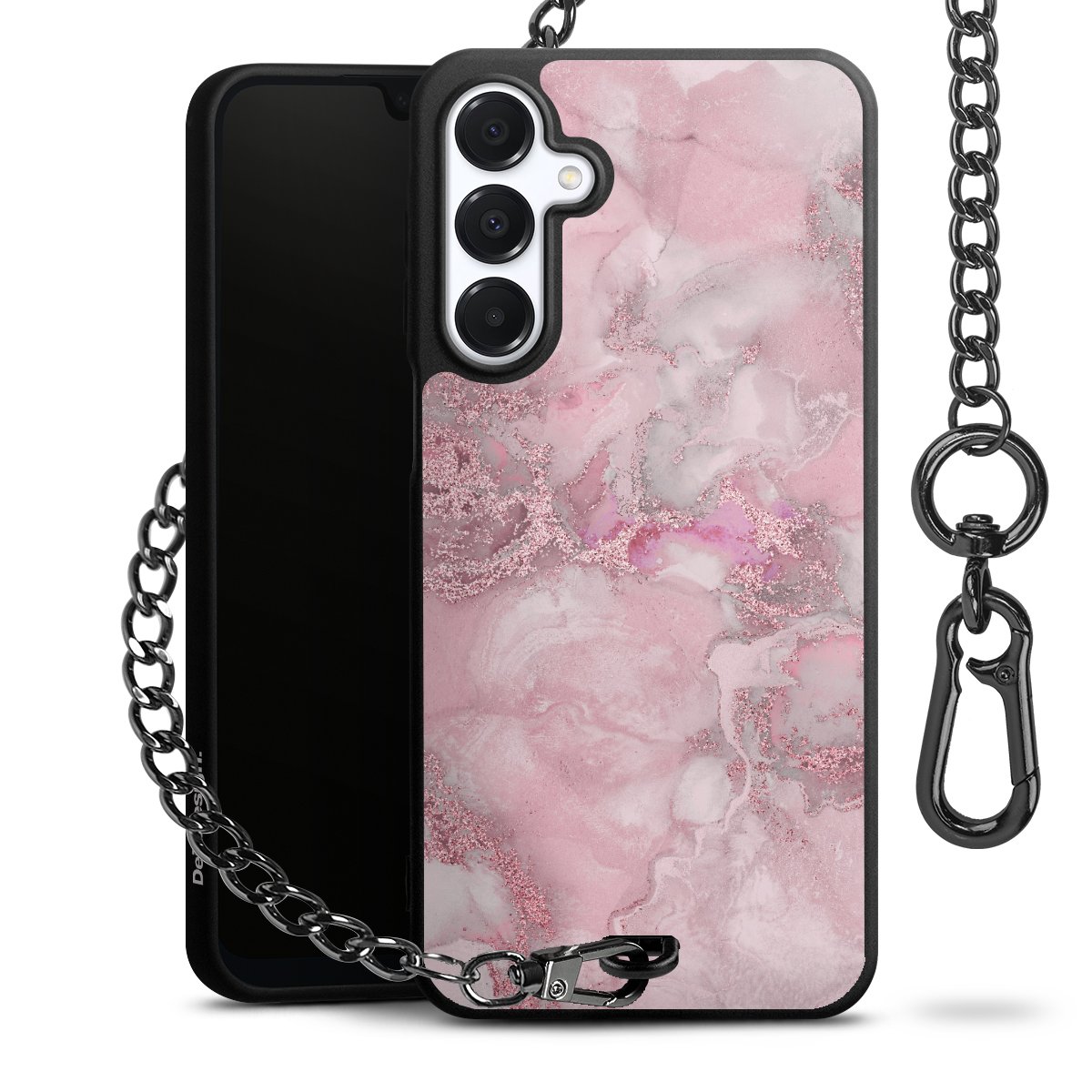 • Mattschwarze Handyhülle mit Metallkette