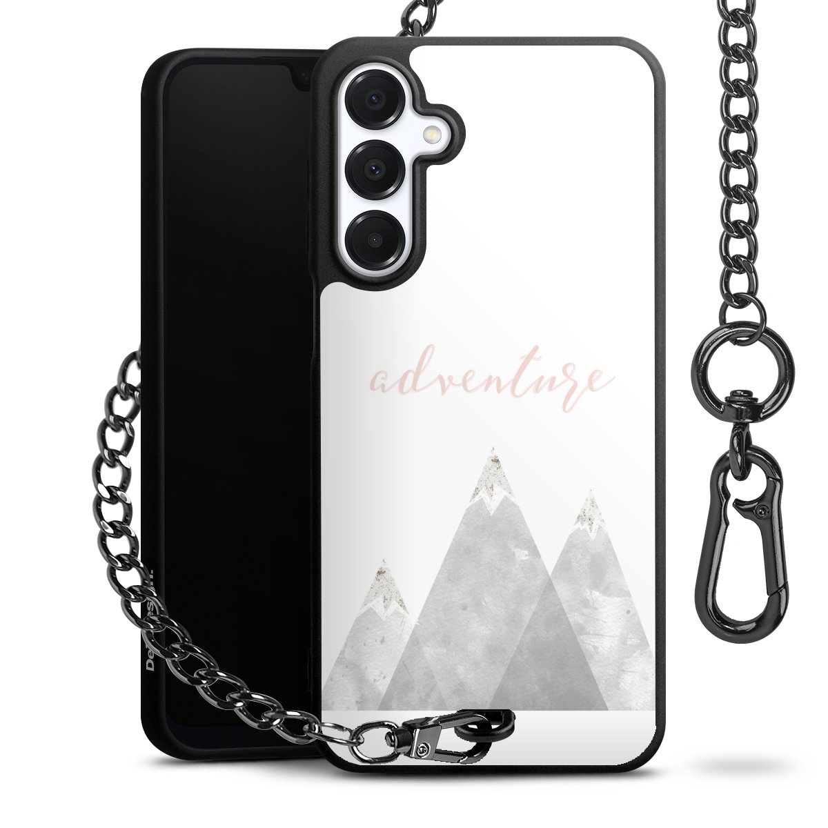 Die mattschwarze Silikon-Handyhülle besteht aus robustem TPU (thermoplastisches Polyurethan). Sie ist flexibel und schützt Dein Smartphone vor Stößen und Kratzern. Die Kette sowie der Karabinerhaken sind aus Metall in Gunmetal-Optik gefertigt. Für dieses Produkt kommen ausschließlich TÜV-geprüfte Materialien zum Einsatz.