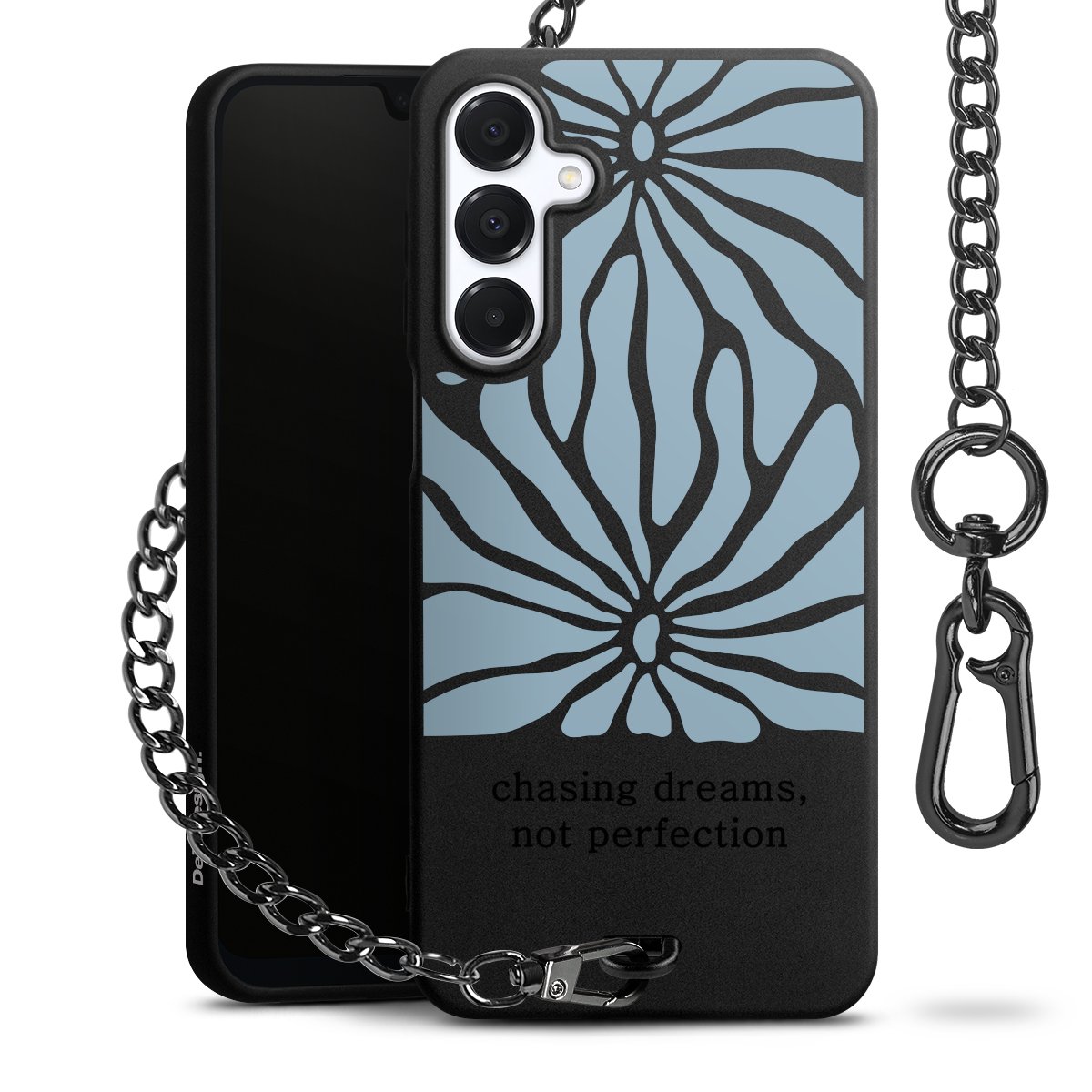 • Mattschwarze Handyhülle mit Metallkette