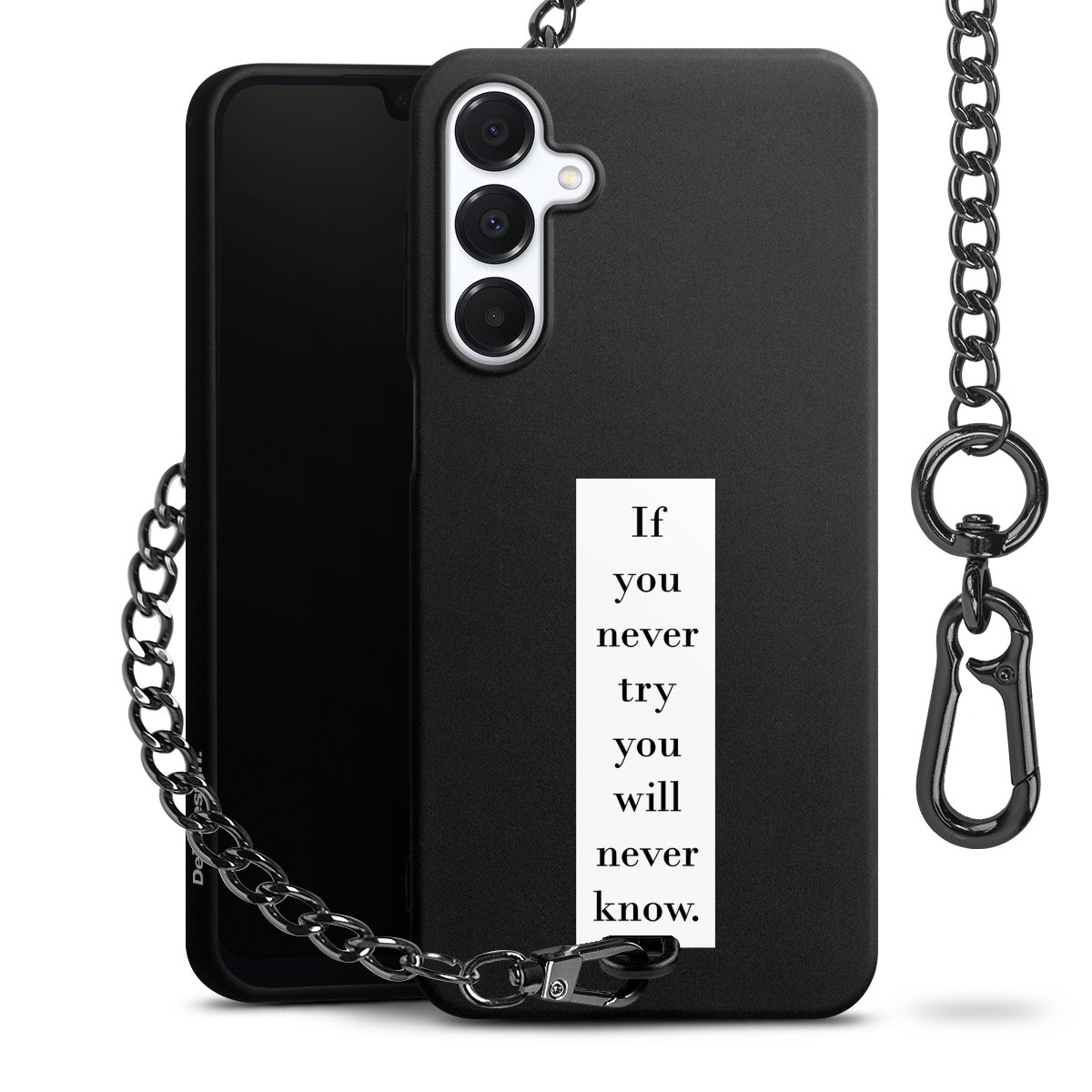 - Mattschwarze Handyhülle mit Metallkette