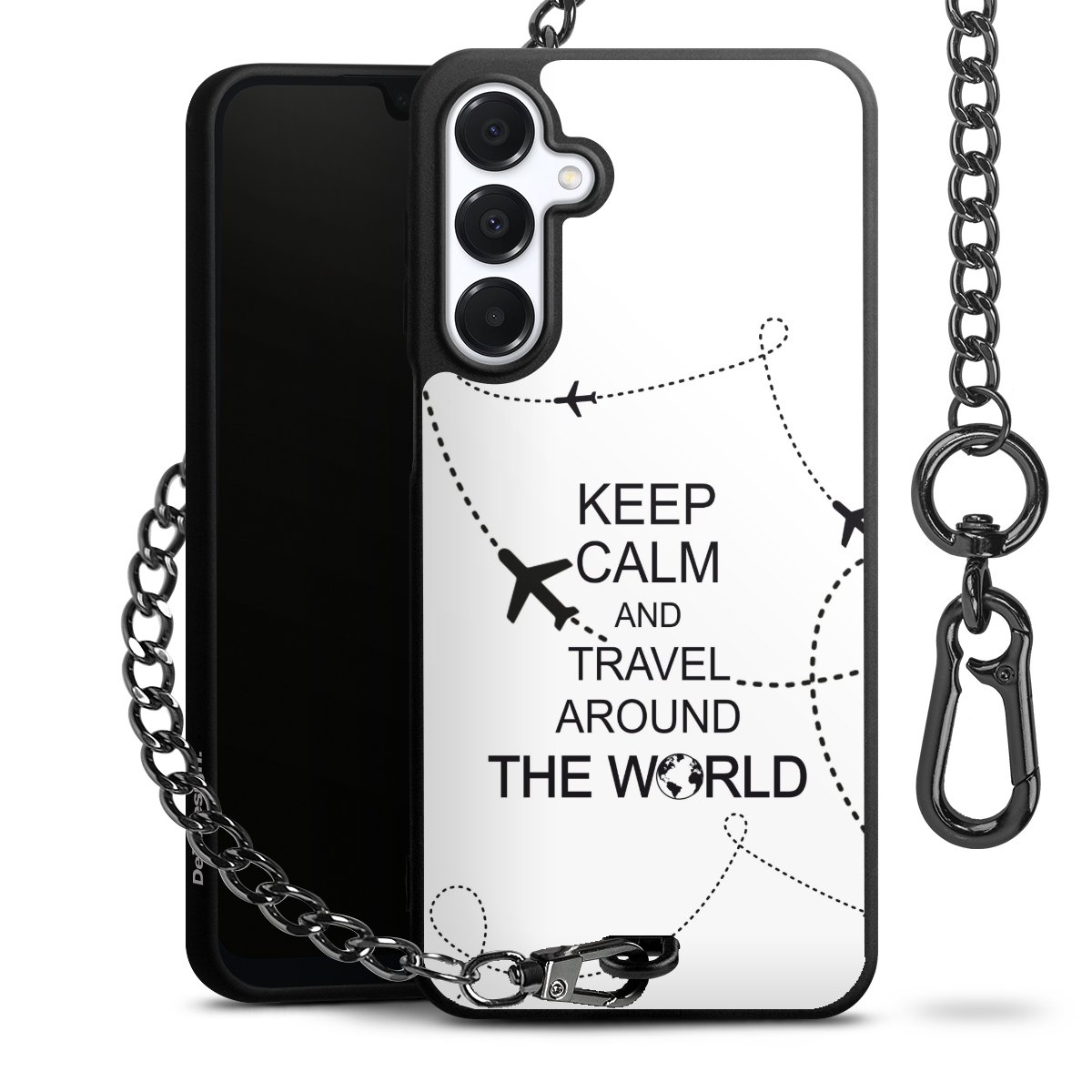 Die mattschwarze Silikon-Handyhülle besteht aus robustem TPU (thermoplastisches Polyurethan). Sie ist flexibel und schützt Dein Smartphone vor Stößen und Kratzern. Die Kette sowie der Karabinerhaken sind aus Metall in Gunmetal-Optik gefertigt. Für dieses Produkt kommen ausschließlich TÜV-geprüfte Materialien zum Einsatz.
