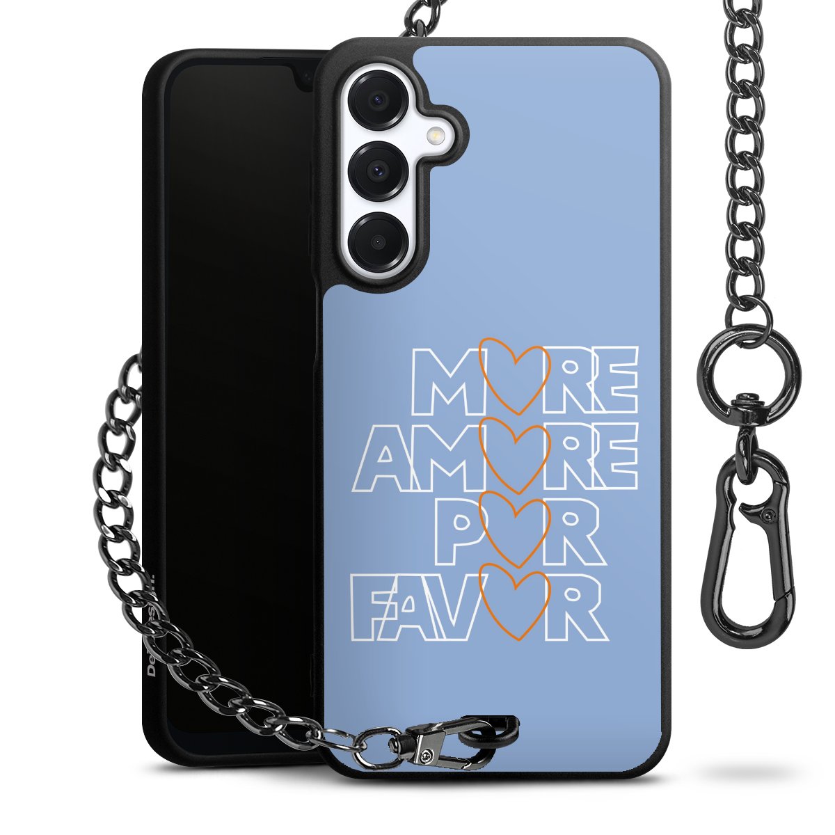 - Mattschwarze Handyhülle mit Metallkette
