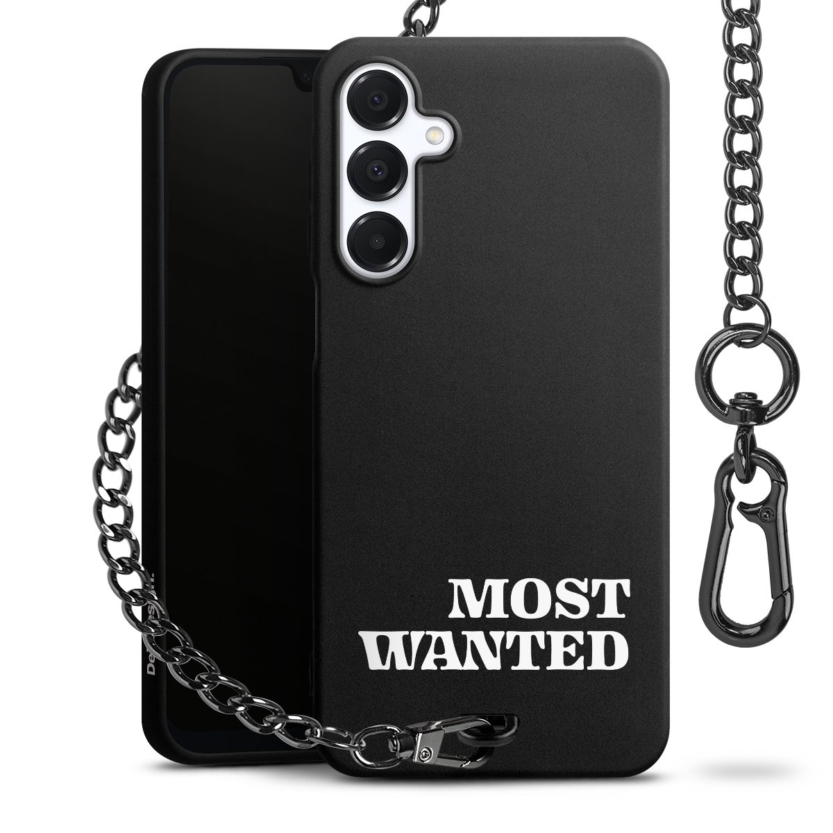 • Mattschwarze Handyhülle mit Metallkette