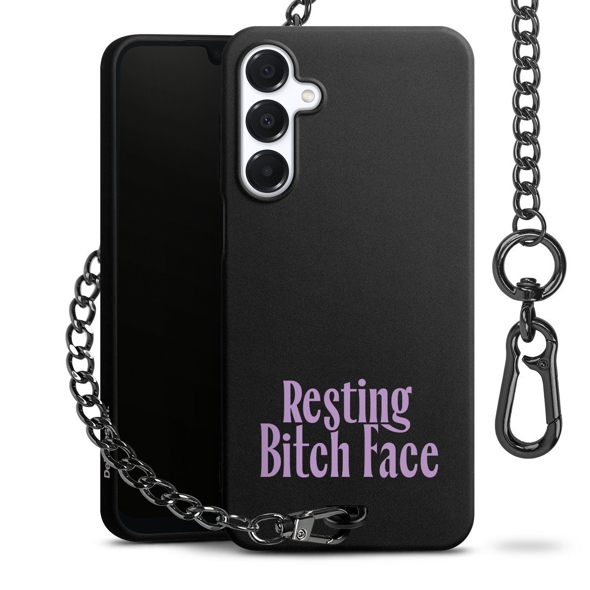 - Mattschwarze Handyhülle mit Metallkette