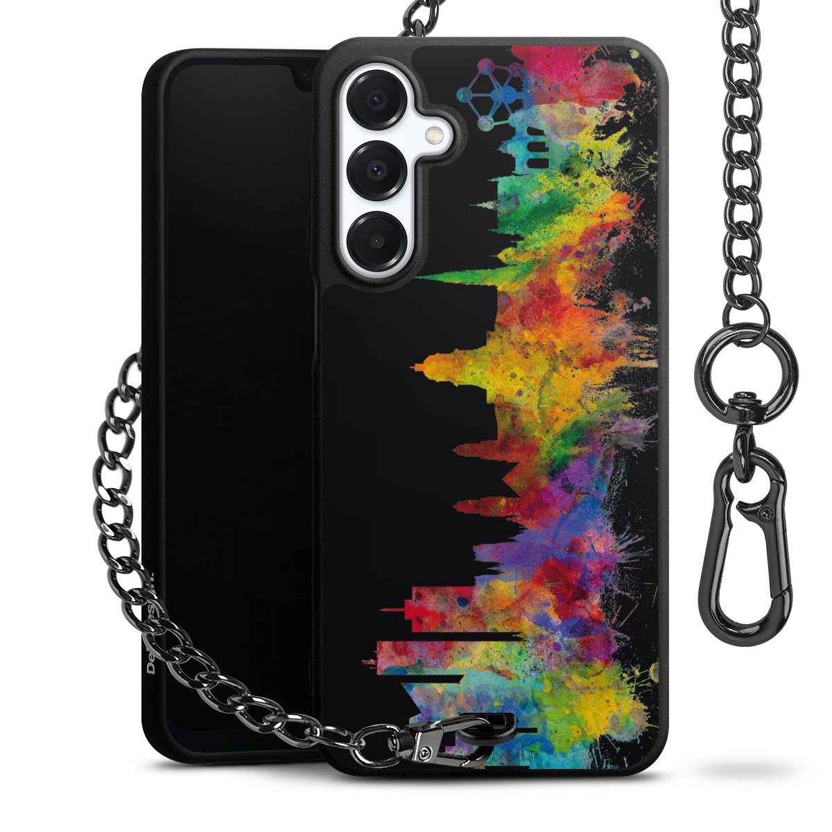 Die mattschwarze Silikon-Handyhülle besteht aus robustem TPU (thermoplastisches Polyurethan). Sie ist flexibel und schützt Dein Smartphone vor Stößen und Kratzern. Die Kette sowie der Karabinerhaken sind aus Metall in Gunmetal-Optik gefertigt. Für dieses Produkt kommen ausschließlich TÜV-geprüfte Materialien zum Einsatz.