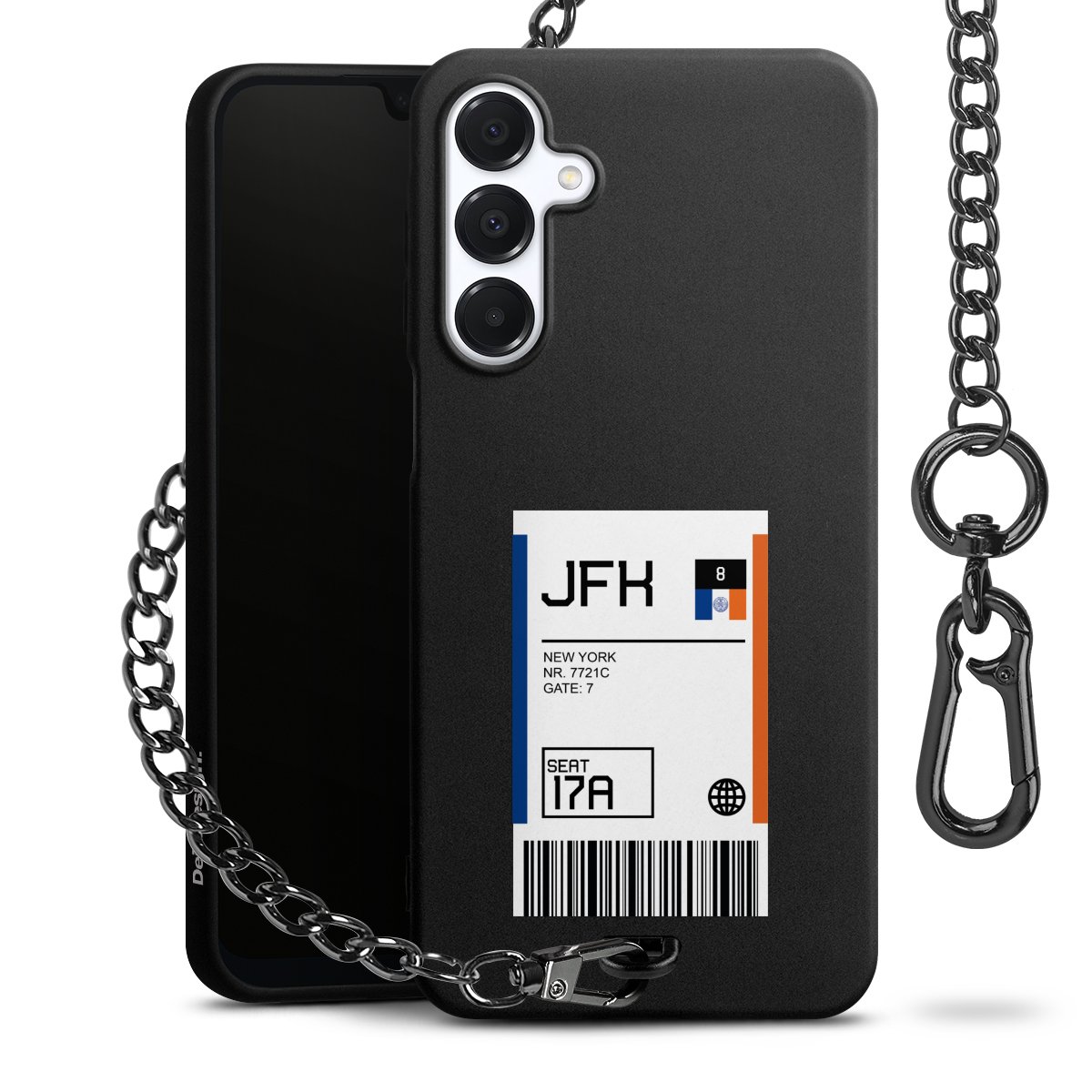 - Mattschwarze Handyhülle mit Metallkette