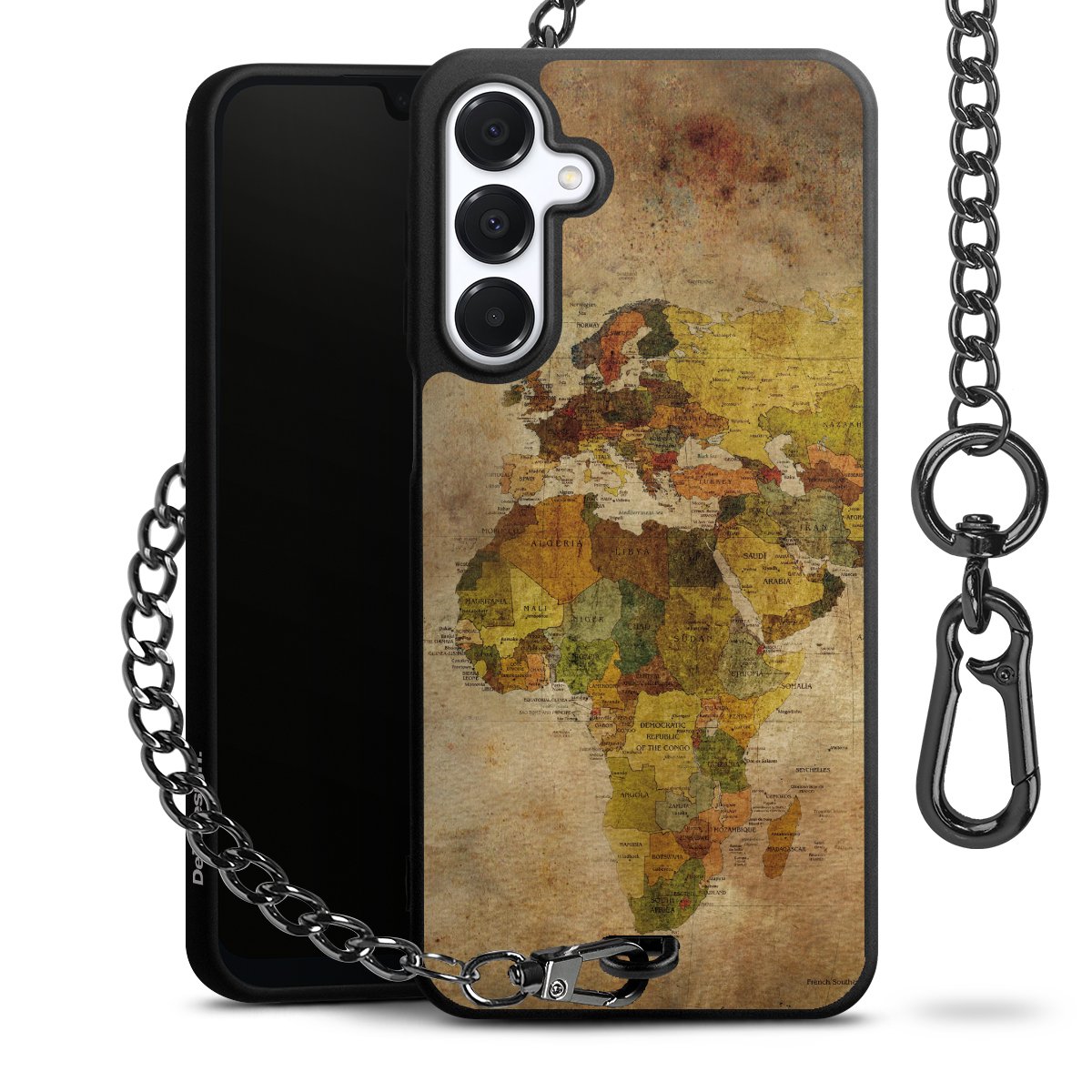 - Mattschwarze Handyhülle mit Metallkette