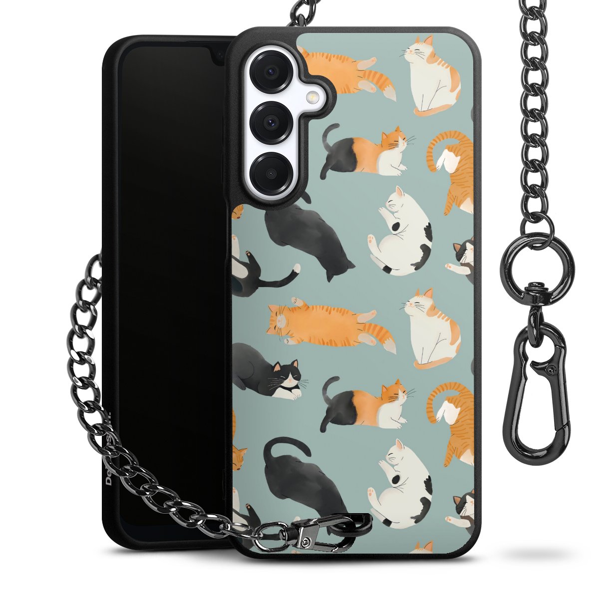 • Mattschwarze Handyhülle mit Metallkette
