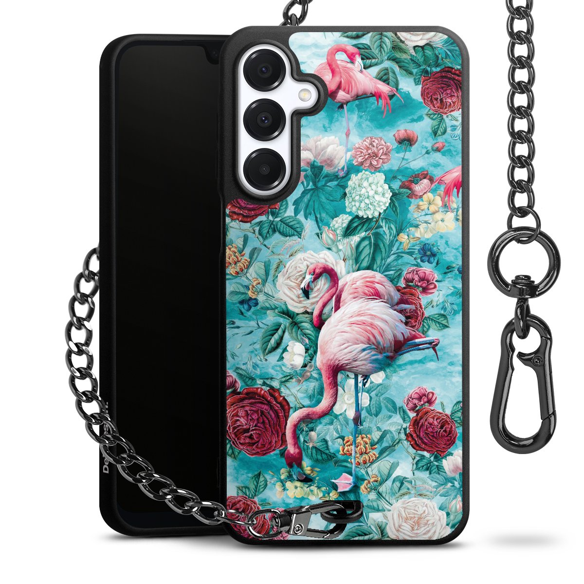 Die mattschwarze Silikon-Handyhülle besteht aus robustem TPU (thermoplastisches Polyurethan). Sie ist flexibel und schützt Dein Smartphone vor Stößen und Kratzern. Die Kette sowie der Karabinerhaken sind aus Metall in Gunmetal-Optik gefertigt. Für dieses Produkt kommen ausschließlich TÜV-geprüfte Materialien zum Einsatz.