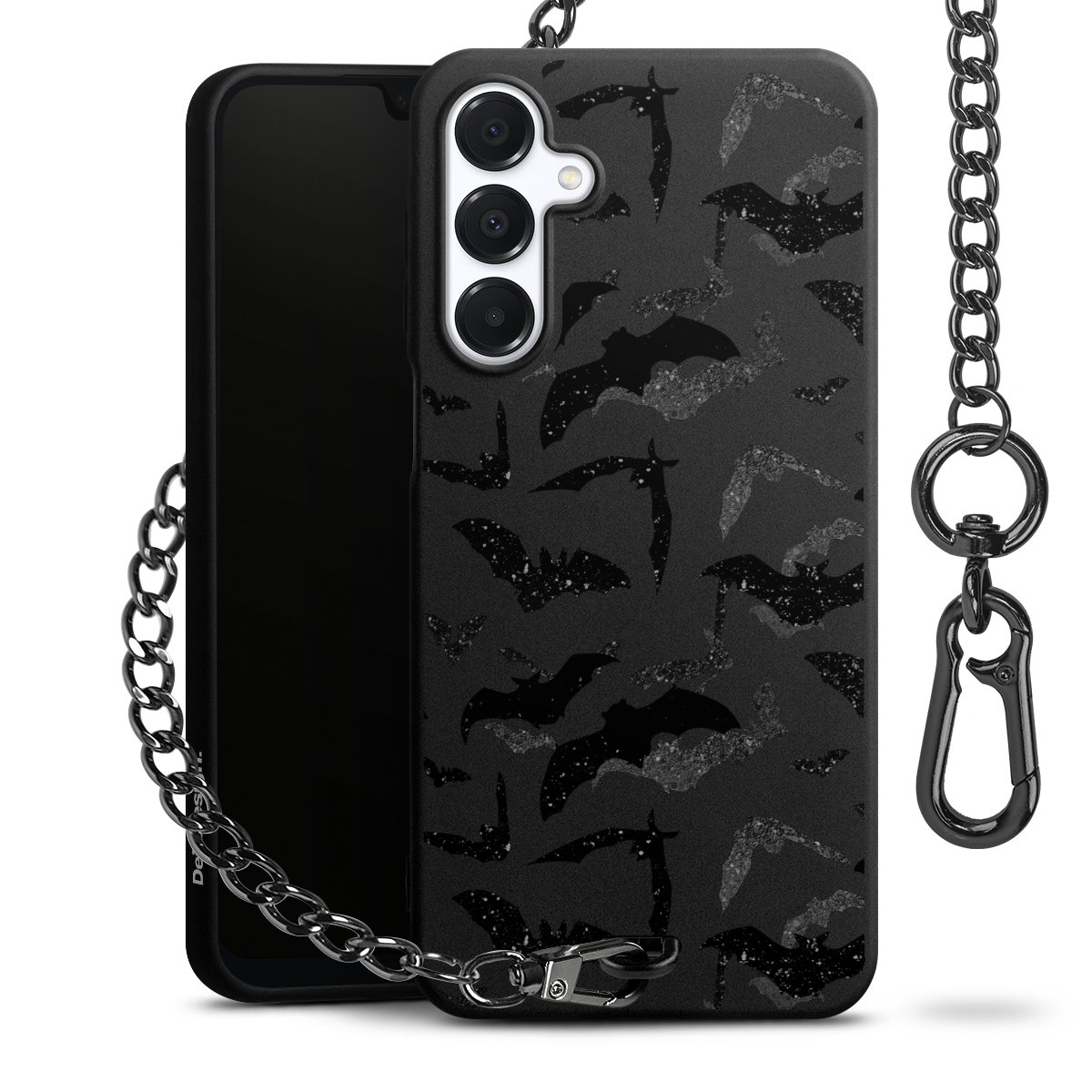 • Mattschwarze Handyhülle mit Metallkette