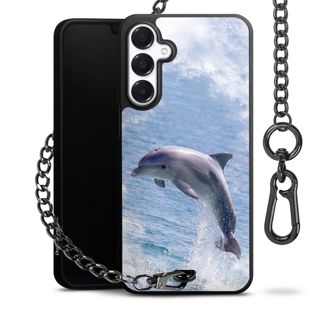 • Mattschwarze Handyhülle mit Metallkette