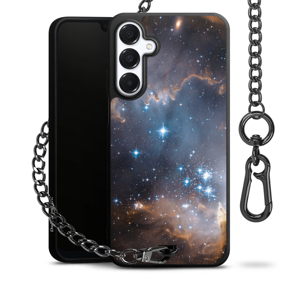 - Mattschwarze Handyhülle mit Metallkette