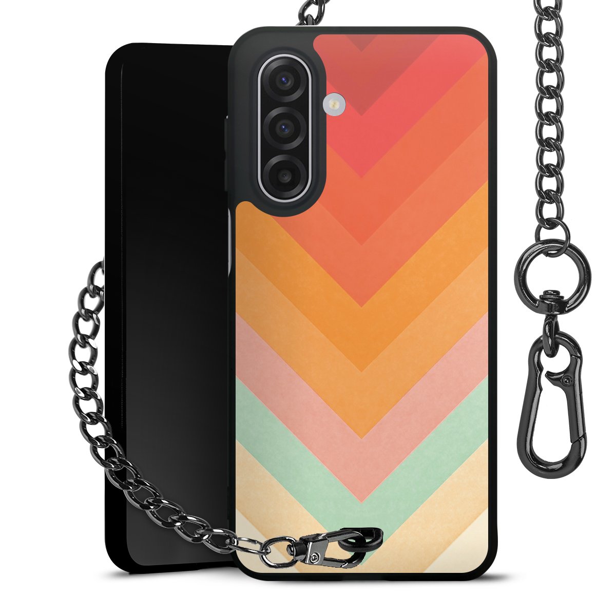 • Mattschwarze Handyhülle mit Metallkette
