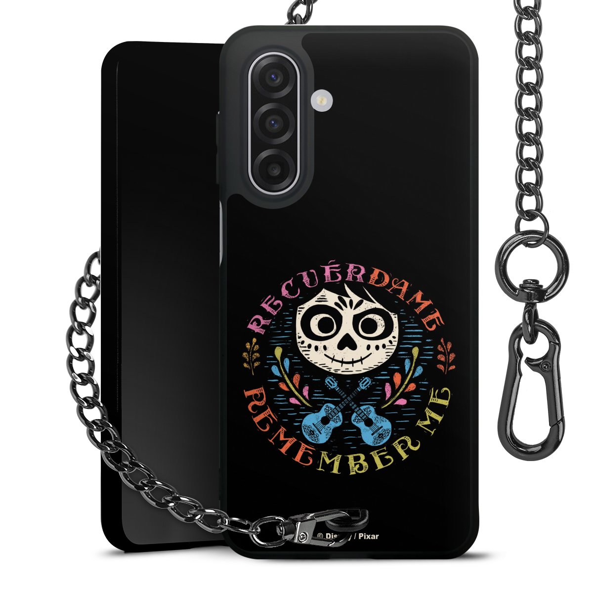 - Mattschwarze Handyhülle mit Metallkette