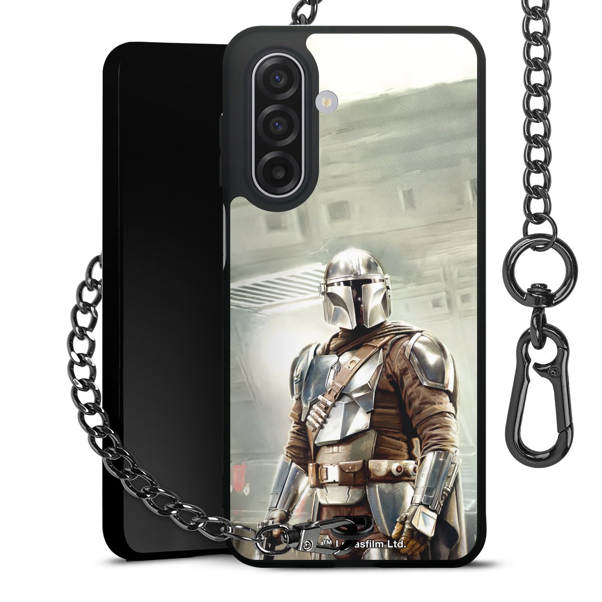 - Mattschwarze Handyhülle mit Metallkette