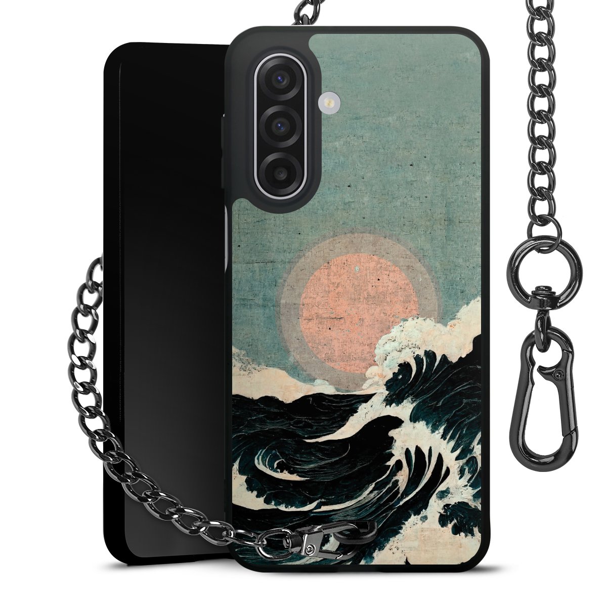 • Mattschwarze Handyhülle mit Metallkette