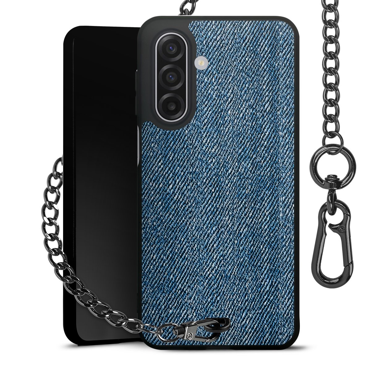 • Mattschwarze Handyhülle mit Metallkette