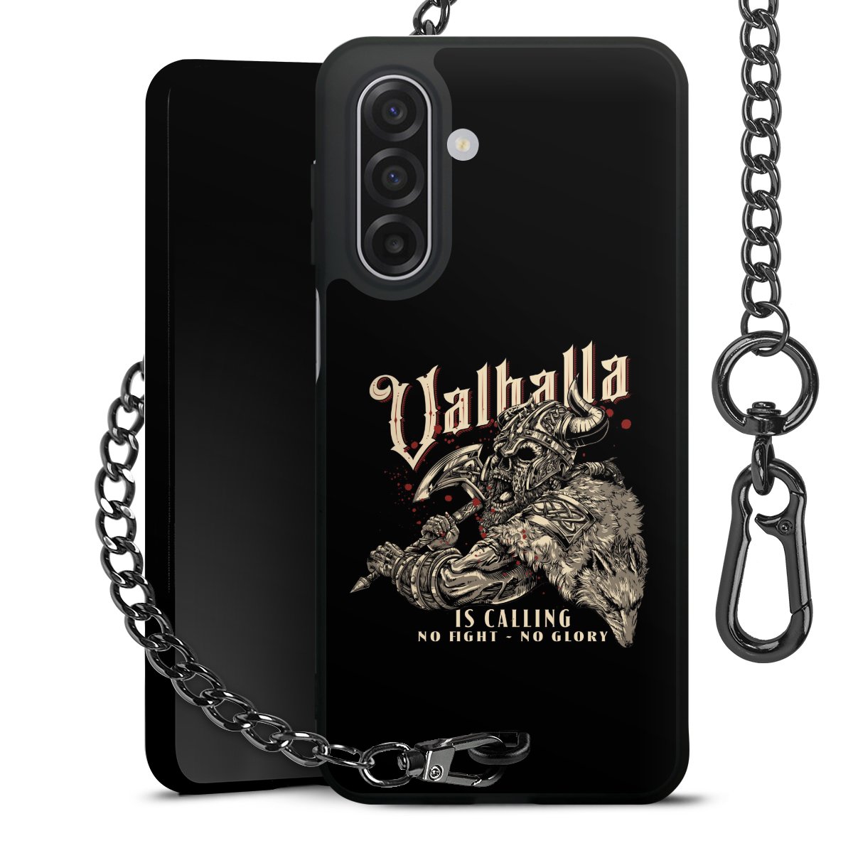 • Mattschwarze Handyhülle mit Metallkette