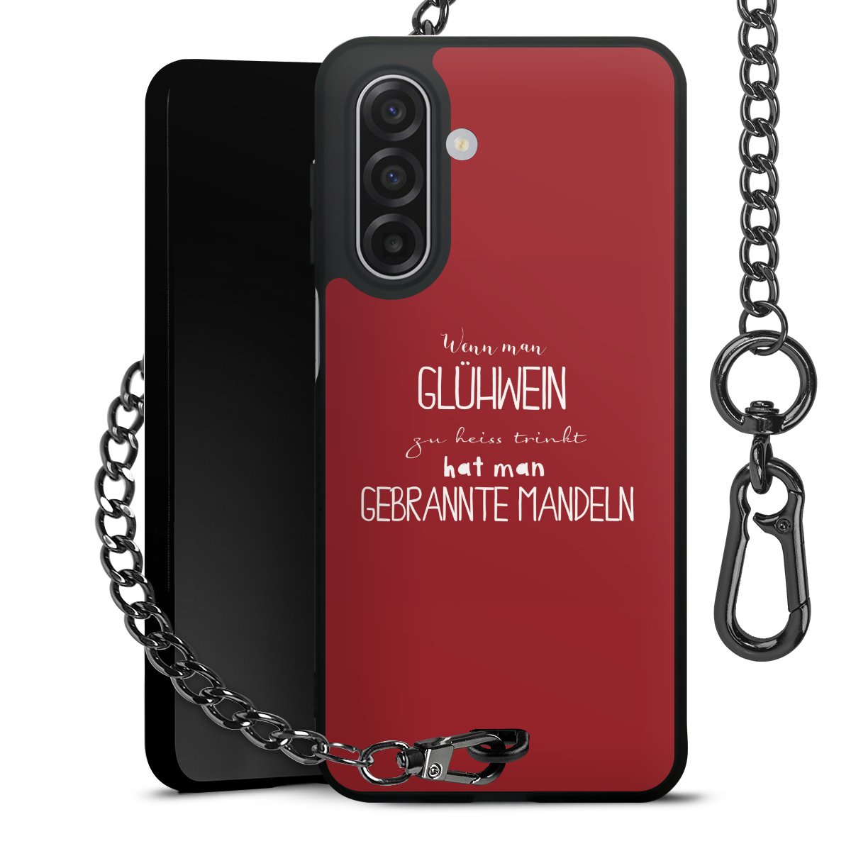 • Mattschwarze Handyhülle mit Metallkette