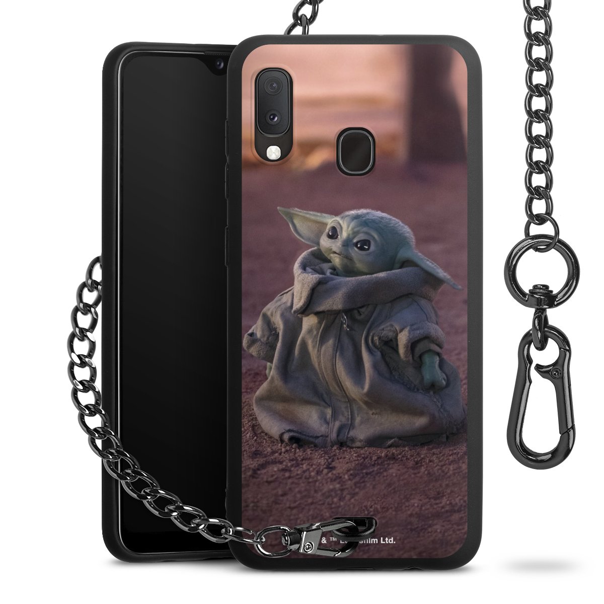 Die mattschwarze Silikon-Handyhülle besteht aus robustem TPU (thermoplastisches Polyurethan). Sie ist flexibel und schützt Dein Smartphone vor Stößen und Kratzern. Die Kette sowie der Karabinerhaken sind aus Metall in Gunmetal-Optik gefertigt. Für dieses Produkt kommen ausschließlich TÜV-geprüfte Materialien zum Einsatz.