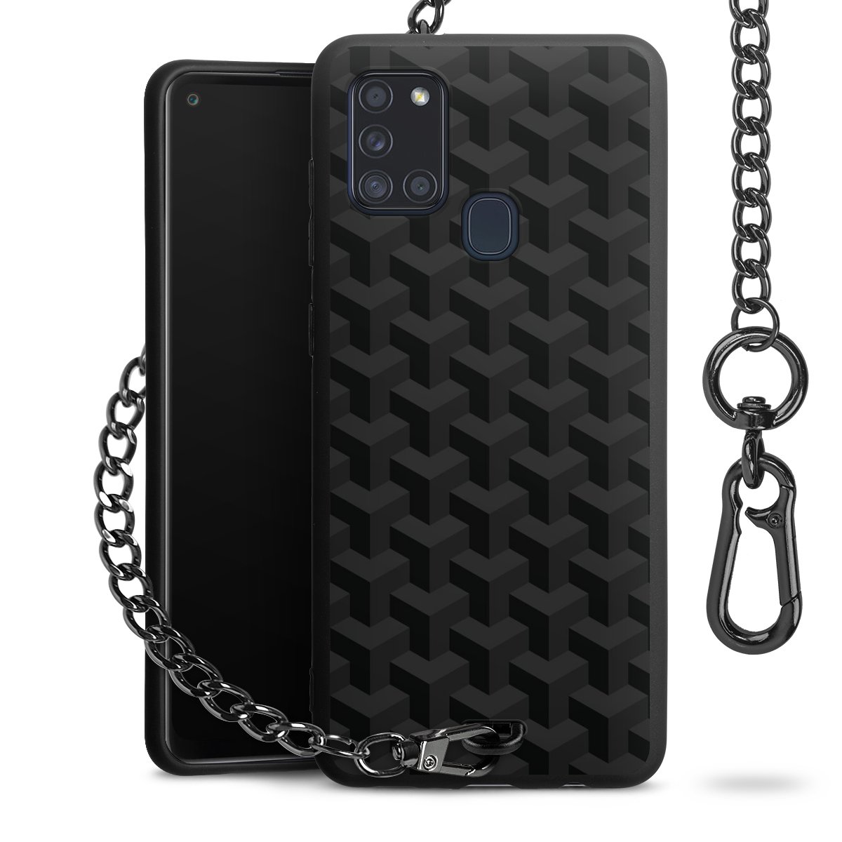 - Mattschwarze Handyhülle mit Metallkette