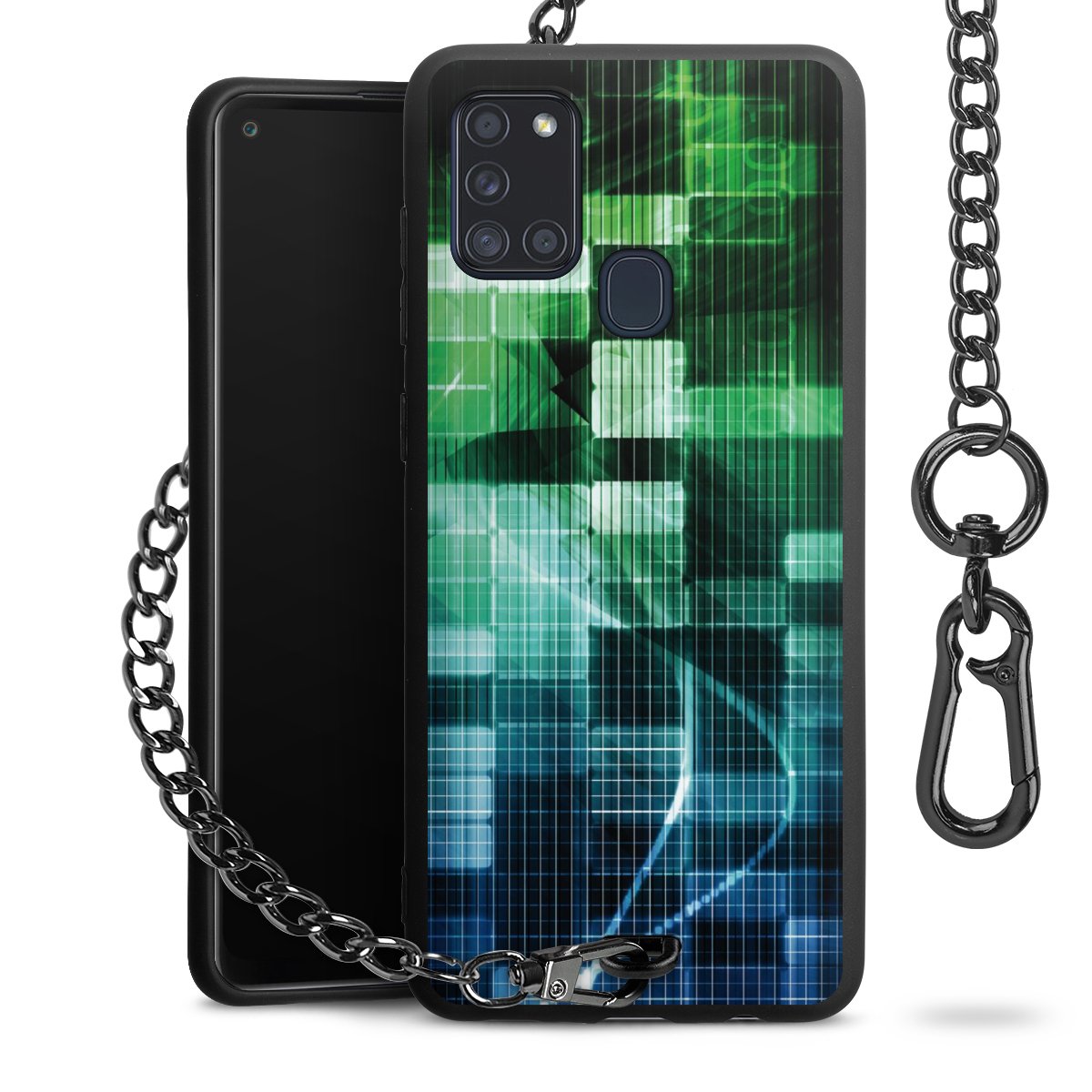 - Mattschwarze Handyhülle mit Metallkette