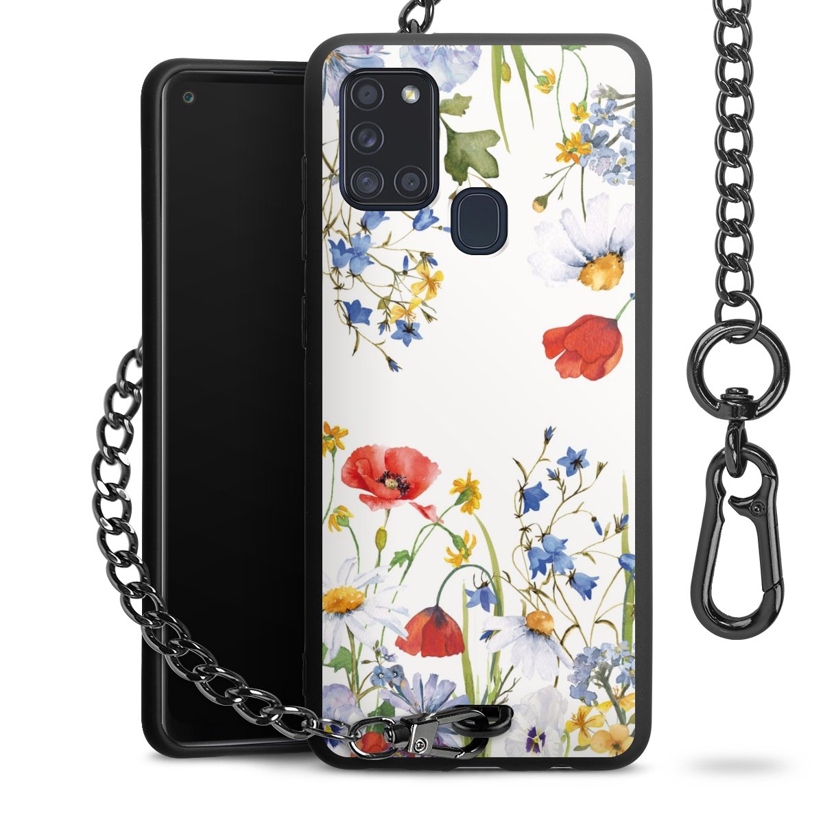 • Mattschwarze Handyhülle mit Metallkette