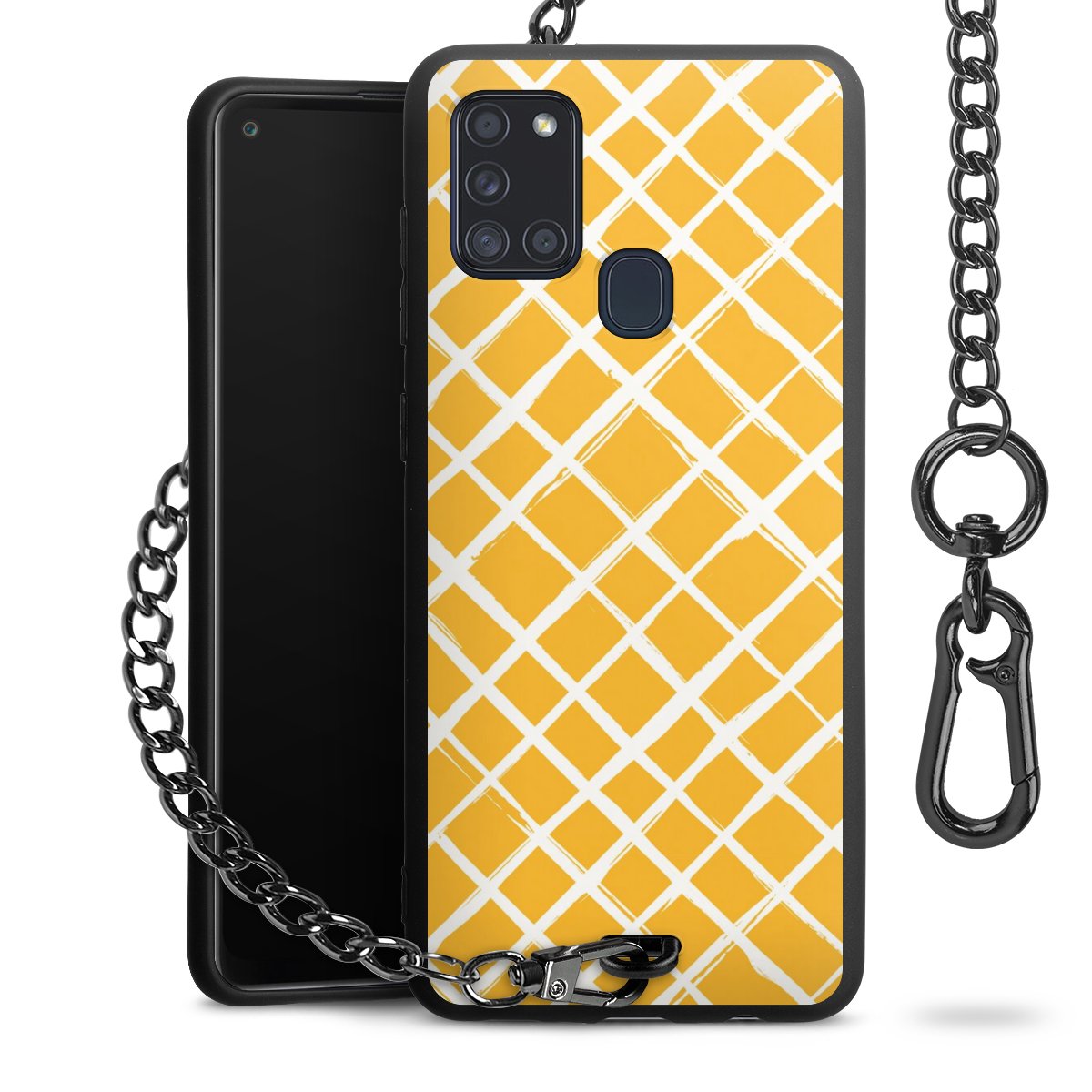 Die mattschwarze Silikon-Handyhülle besteht aus robustem TPU (thermoplastisches Polyurethan). Sie ist flexibel und schützt Dein Smartphone vor Stößen und Kratzern. Die Kette sowie der Karabinerhaken sind aus Metall in Gunmetal-Optik gefertigt. Für dieses Produkt kommen ausschließlich TÜV-geprüfte Materialien zum Einsatz.