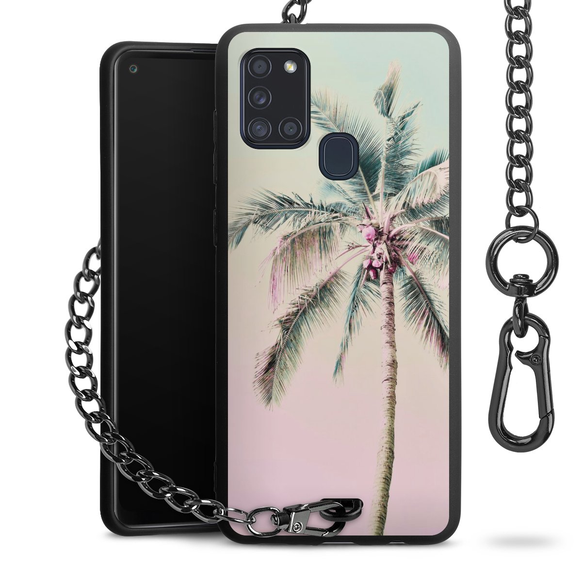 Die mattschwarze Silikon-Handyhülle besteht aus robustem TPU (thermoplastisches Polyurethan). Sie ist flexibel und schützt Dein Smartphone vor Stößen und Kratzern. Die Kette sowie der Karabinerhaken sind aus Metall in Gunmetal-Optik gefertigt. Für dieses Produkt kommen ausschließlich TÜV-geprüfte Materialien zum Einsatz.