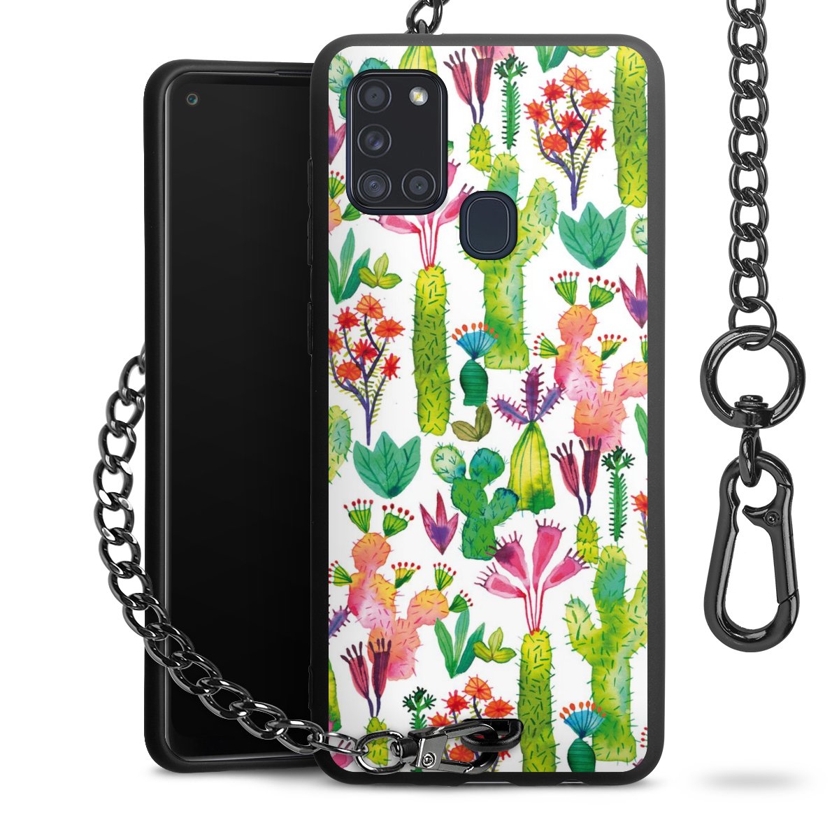 Die mattschwarze Silikon-Handyhülle besteht aus robustem TPU (thermoplastisches Polyurethan). Sie ist flexibel und schützt Dein Smartphone vor Stößen und Kratzern. Die Kette sowie der Karabinerhaken sind aus Metall in Gunmetal-Optik gefertigt. Für dieses Produkt kommen ausschließlich TÜV-geprüfte Materialien zum Einsatz.