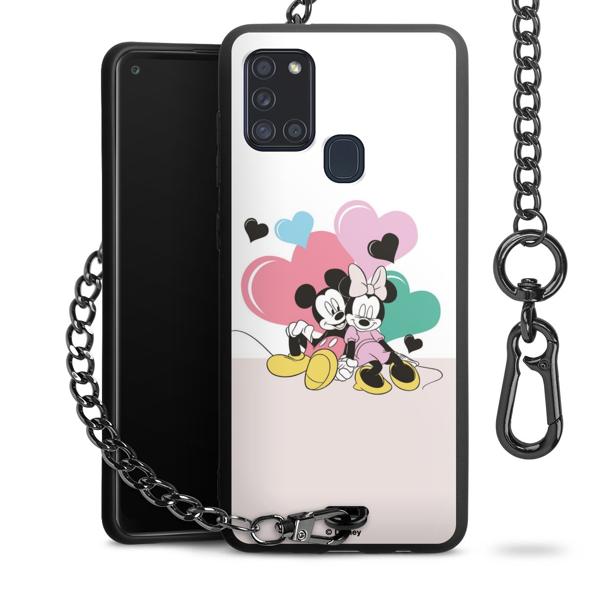 Die Handyhülle verfügt über eine mittig am unteren Rand platzierte Öse, an der die Metallkette stabil befestigt ist. Bestelle die Hülle einfach für Dein Smartphone-Modell, dann passt sie wie angegossen und Du brauchst sie bloß einmal anzudrücken. Handy in die Tasche, Karabiner an den Hosenbund – schon kann die Party starten.