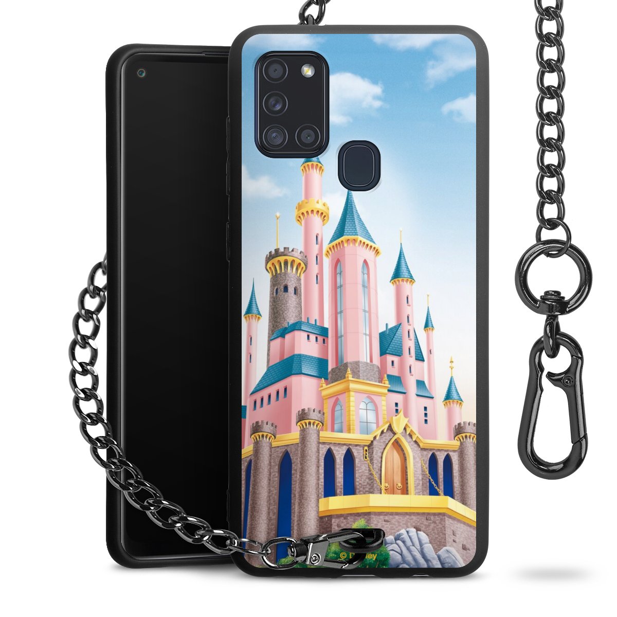 Die Handyhülle verfügt über eine mittig am unteren Rand platzierte Öse, an der die Metallkette stabil befestigt ist. Bestelle die Hülle einfach für Dein Smartphone-Modell, dann passt sie wie angegossen und Du brauchst sie bloß einmal anzudrücken. Handy in die Tasche, Karabiner an den Hosenbund – schon kann die Party starten.