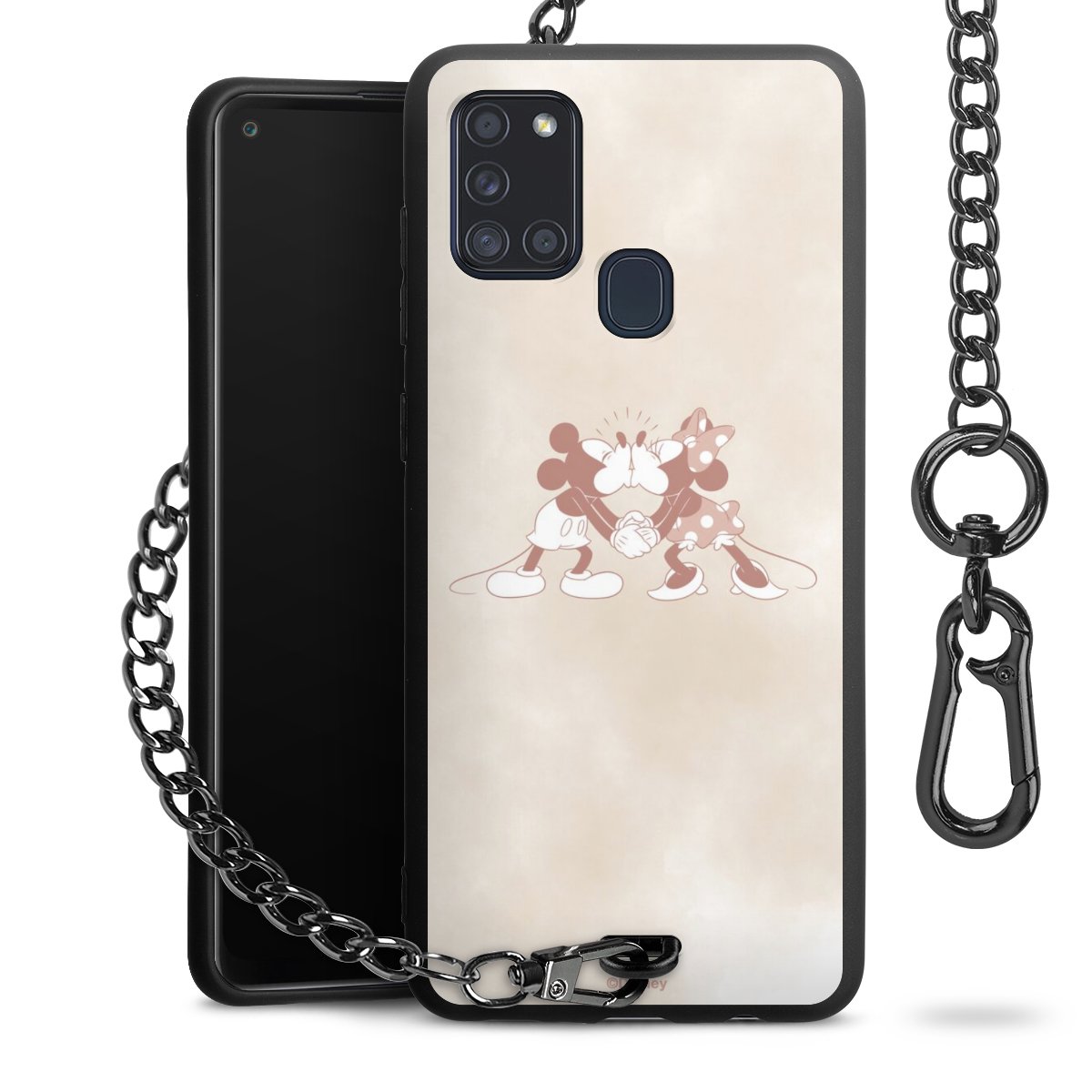 Die Handyhülle verfügt über eine mittig am unteren Rand platzierte Öse, an der die Metallkette stabil befestigt ist. Bestelle die Hülle einfach für Dein Smartphone-Modell, dann passt sie wie angegossen und Du brauchst sie bloß einmal anzudrücken. Handy in die Tasche, Karabiner an den Hosenbund – schon kann die Party starten.