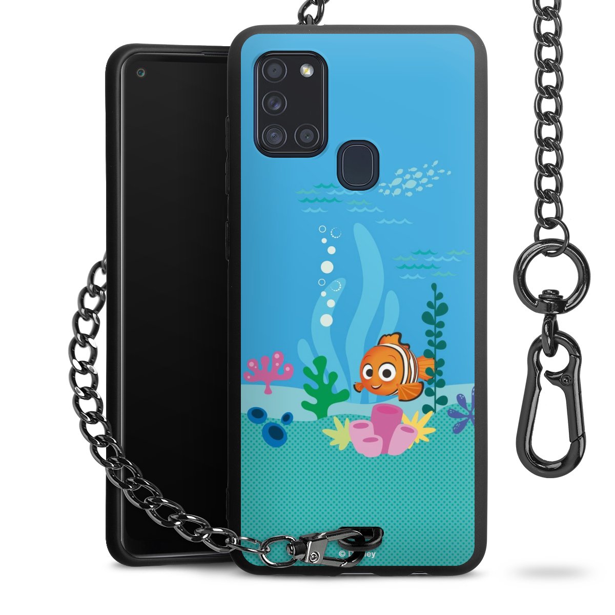 Die mattschwarze Silikon-Handyhülle besteht aus robustem TPU (thermoplastisches Polyurethan). Sie ist flexibel und schützt Dein Smartphone vor Stößen und Kratzern. Die Kette sowie der Karabinerhaken sind aus Metall in Gunmetal-Optik gefertigt. Für dieses Produkt kommen ausschließlich TÜV-geprüfte Materialien zum Einsatz.