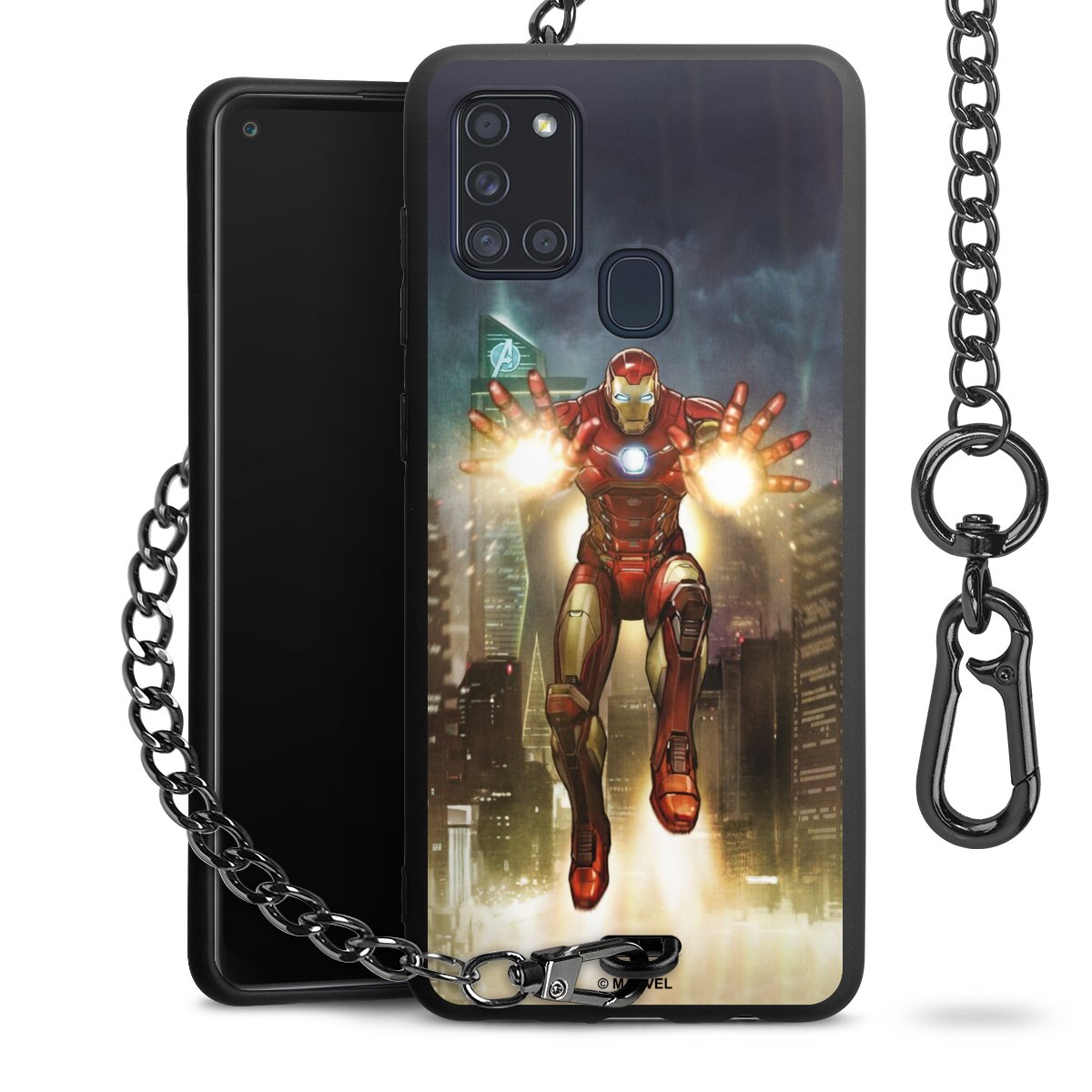 Die mattschwarze Silikon-Handyhülle besteht aus robustem TPU (thermoplastisches Polyurethan). Sie ist flexibel und schützt Dein Smartphone vor Stößen und Kratzern. Die Kette sowie der Karabinerhaken sind aus Metall in Gunmetal-Optik gefertigt. Für dieses Produkt kommen ausschließlich TÜV-geprüfte Materialien zum Einsatz.