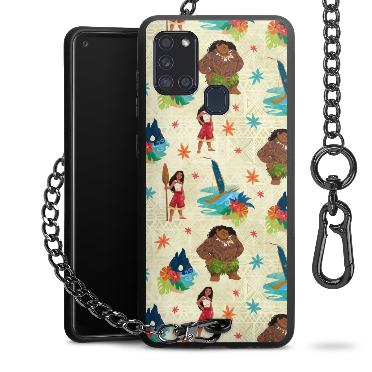 • Mattschwarze Handyhülle mit Metallkette