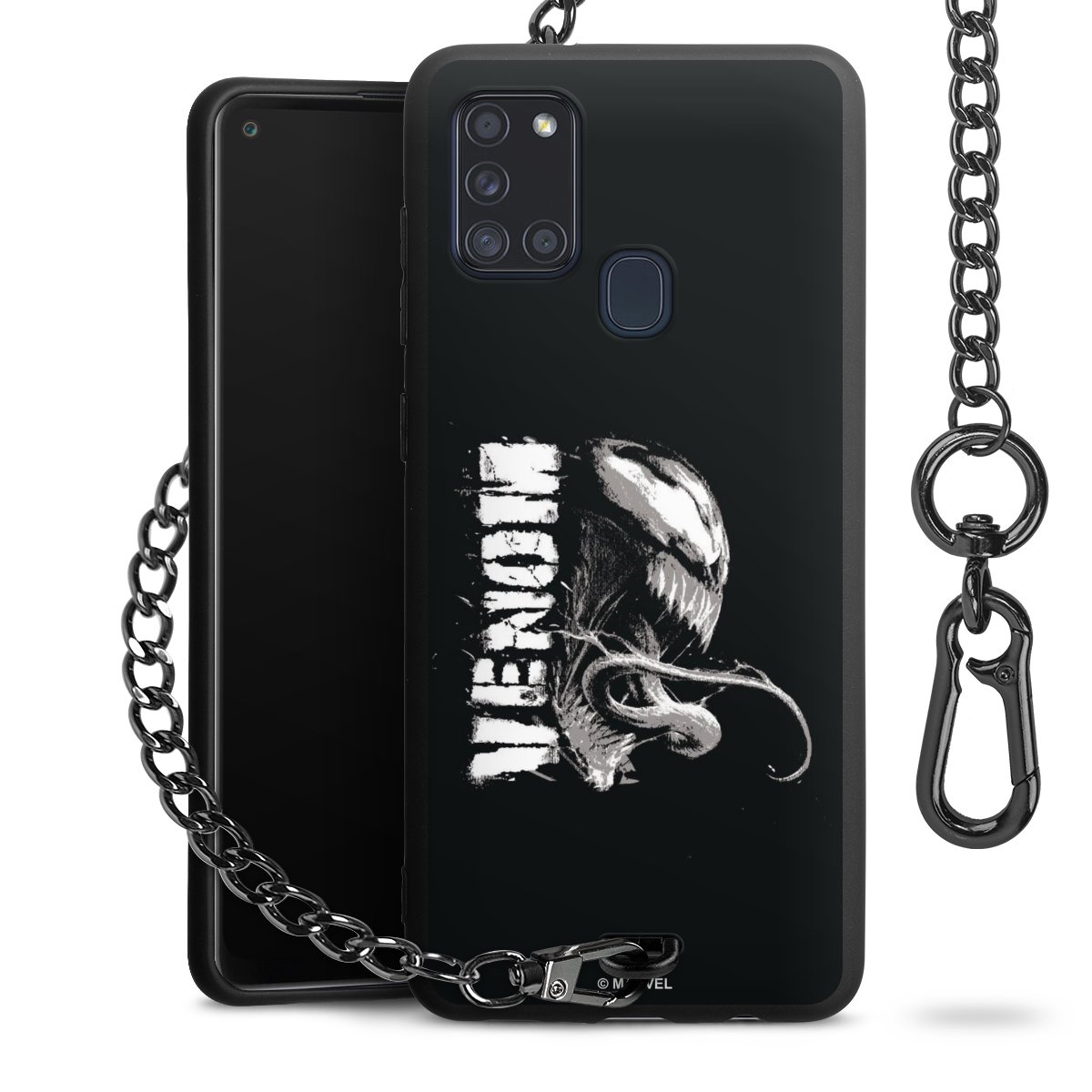 Die mattschwarze Silikon-Handyhülle besteht aus robustem TPU (thermoplastisches Polyurethan). Sie ist flexibel und schützt Dein Smartphone vor Stößen und Kratzern. Die Kette sowie der Karabinerhaken sind aus Metall in Gunmetal-Optik gefertigt. Für dieses Produkt kommen ausschließlich TÜV-geprüfte Materialien zum Einsatz.