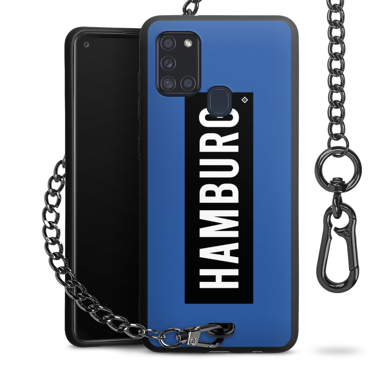 Die mattschwarze Silikon-Handyhülle besteht aus robustem TPU (thermoplastisches Polyurethan). Sie ist flexibel und schützt Dein Smartphone vor Stößen und Kratzern. Die Kette sowie der Karabinerhaken sind aus Metall in Gunmetal-Optik gefertigt. Für dieses Produkt kommen ausschließlich TÜV-geprüfte Materialien zum Einsatz.