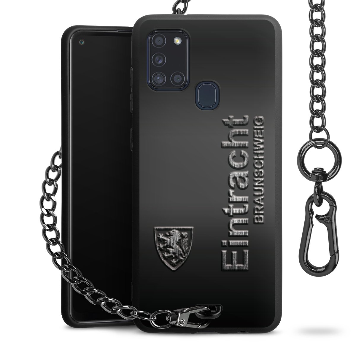 • Mattschwarze Handyhülle mit Metallkette