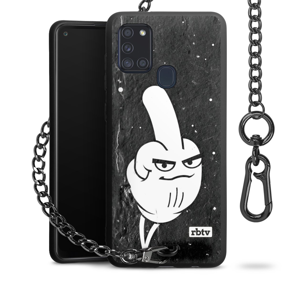 Die mattschwarze Silikon-Handyhülle besteht aus robustem TPU (thermoplastisches Polyurethan). Sie ist flexibel und schützt Dein Smartphone vor Stößen und Kratzern. Die Kette sowie der Karabinerhaken sind aus Metall in Gunmetal-Optik gefertigt. Für dieses Produkt kommen ausschließlich TÜV-geprüfte Materialien zum Einsatz.