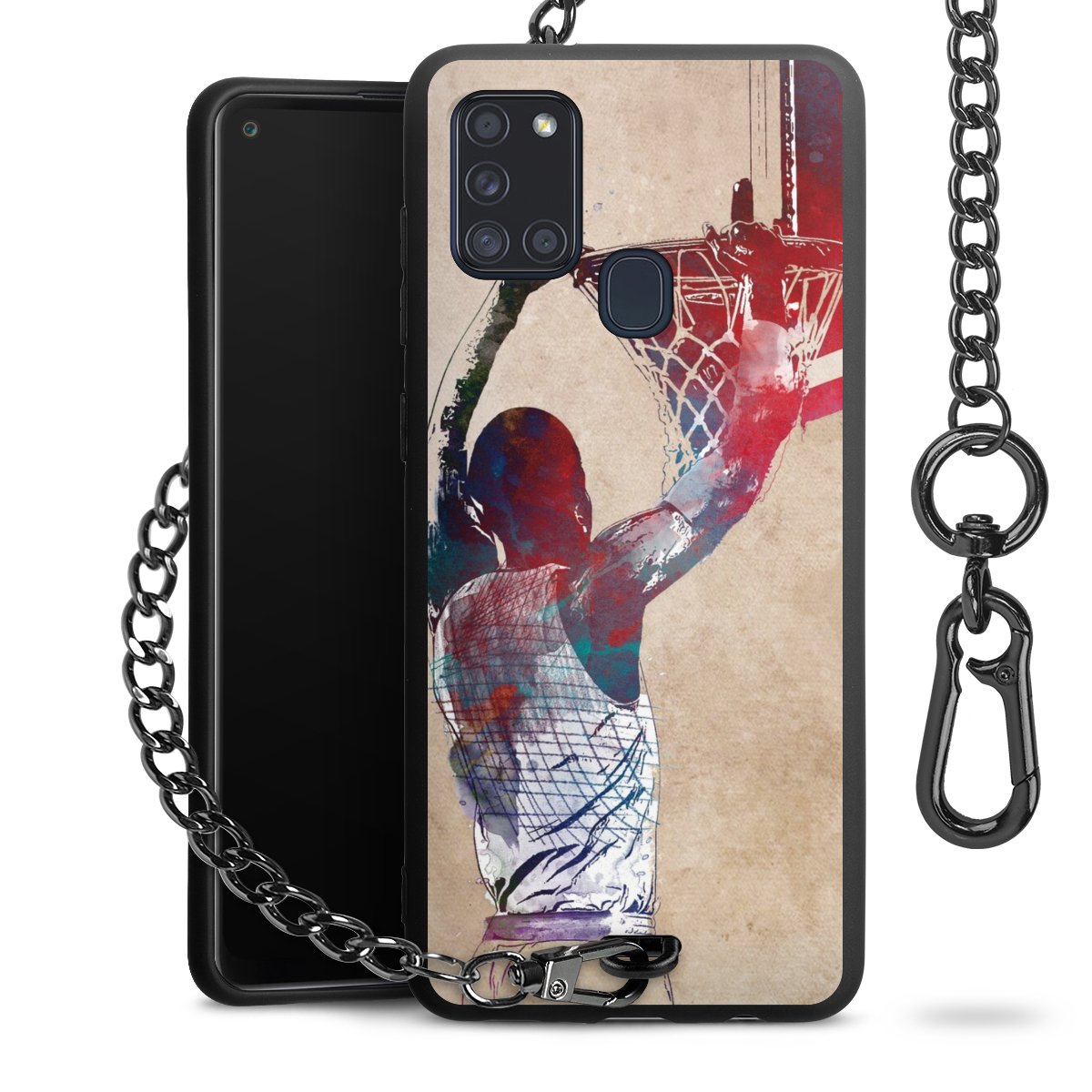 Die mattschwarze Silikon-Handyhülle besteht aus robustem TPU (thermoplastisches Polyurethan). Sie ist flexibel und schützt Dein Smartphone vor Stößen und Kratzern. Die Kette sowie der Karabinerhaken sind aus Metall in Gunmetal-Optik gefertigt. Für dieses Produkt kommen ausschließlich TÜV-geprüfte Materialien zum Einsatz.