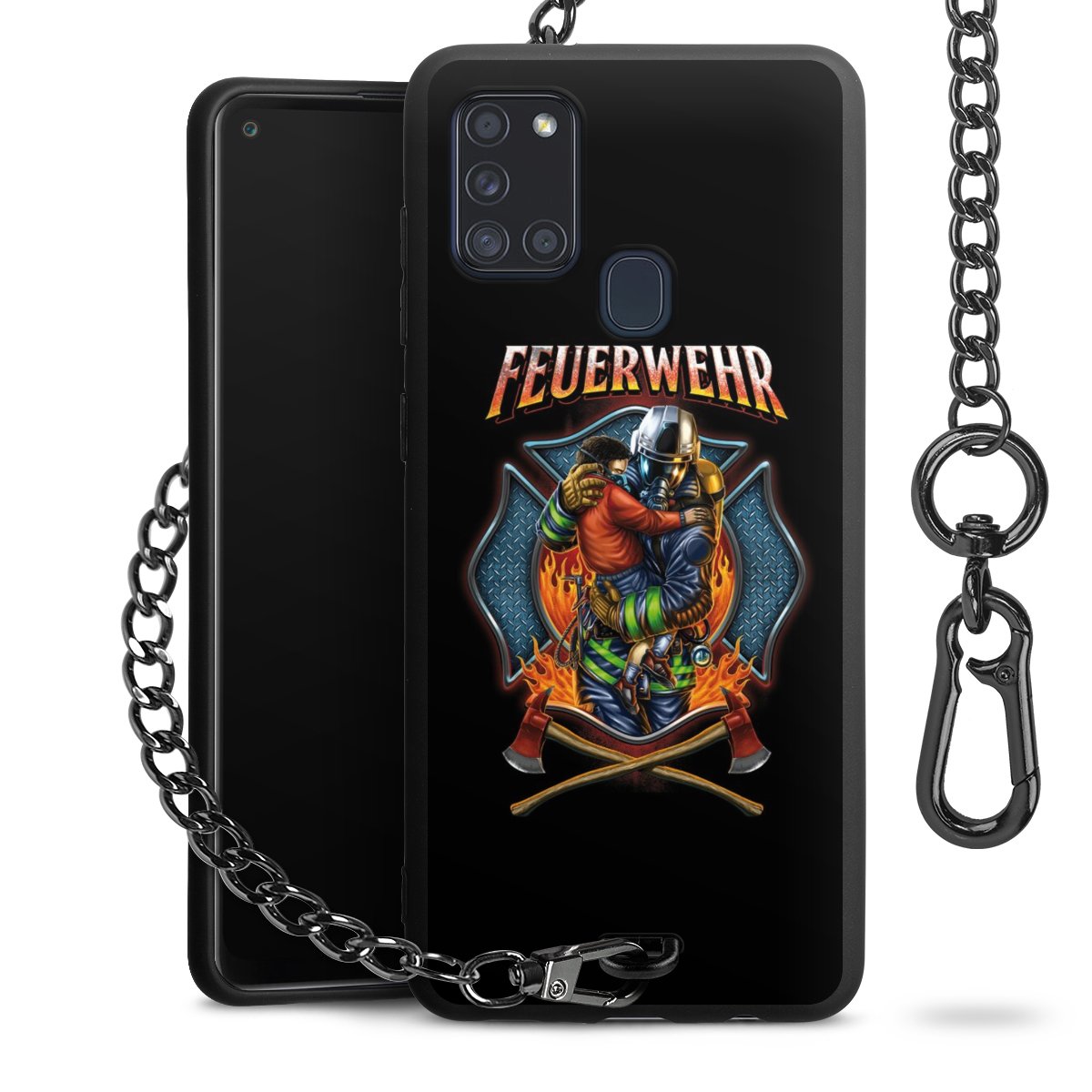 • Mattschwarze Handyhülle mit Metallkette
