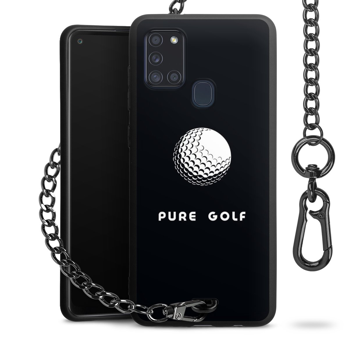 • Mattschwarze Handyhülle mit Metallkette